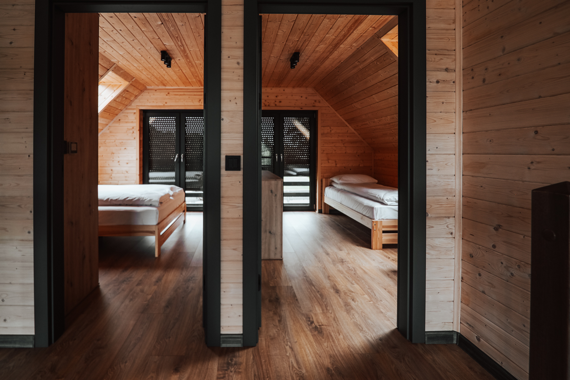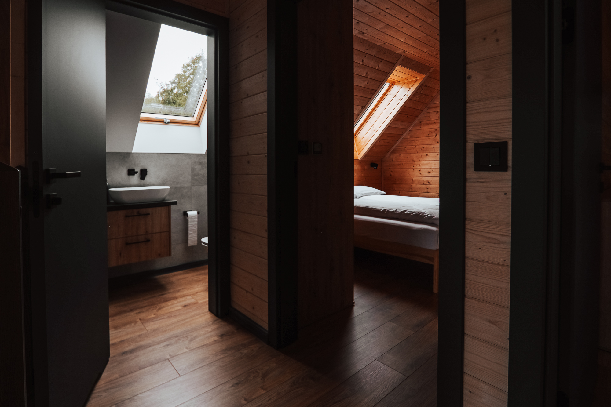 Zimą za komfort odpowiada elektryczne ogrzewanie podłogowe z niezależnym termoregulatorem w każdym pokoju.