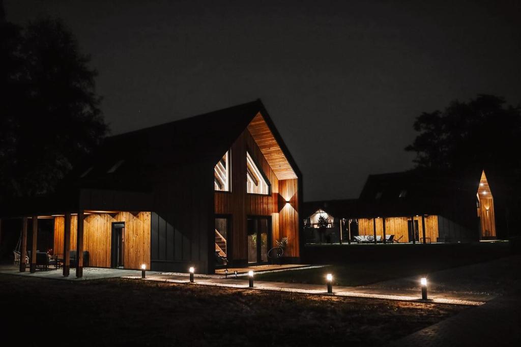 Zapewniając wygodę na poziomie luksusowych obiektów, jednocześnie będąc w otoczeniu dzikiej przyrody. Idealne połączenie natury z nowoczesnymi udogodnieniami, takimi jak pełne wyposażenie AGD i RTV, zadaszony taras czy szybkie Wi-Fi. Domki są całoroczne, co oznacza, że możesz cieszyć się wypoczynkiem niezależnie od pory roku. Latem korzystasz z tras rowerowych, jezior i stawów, a zimą możesz odpocząć w ciepłym, przytulnym wnętrzu, podziwiając zimowy krajobraz Doliny Baryczy.